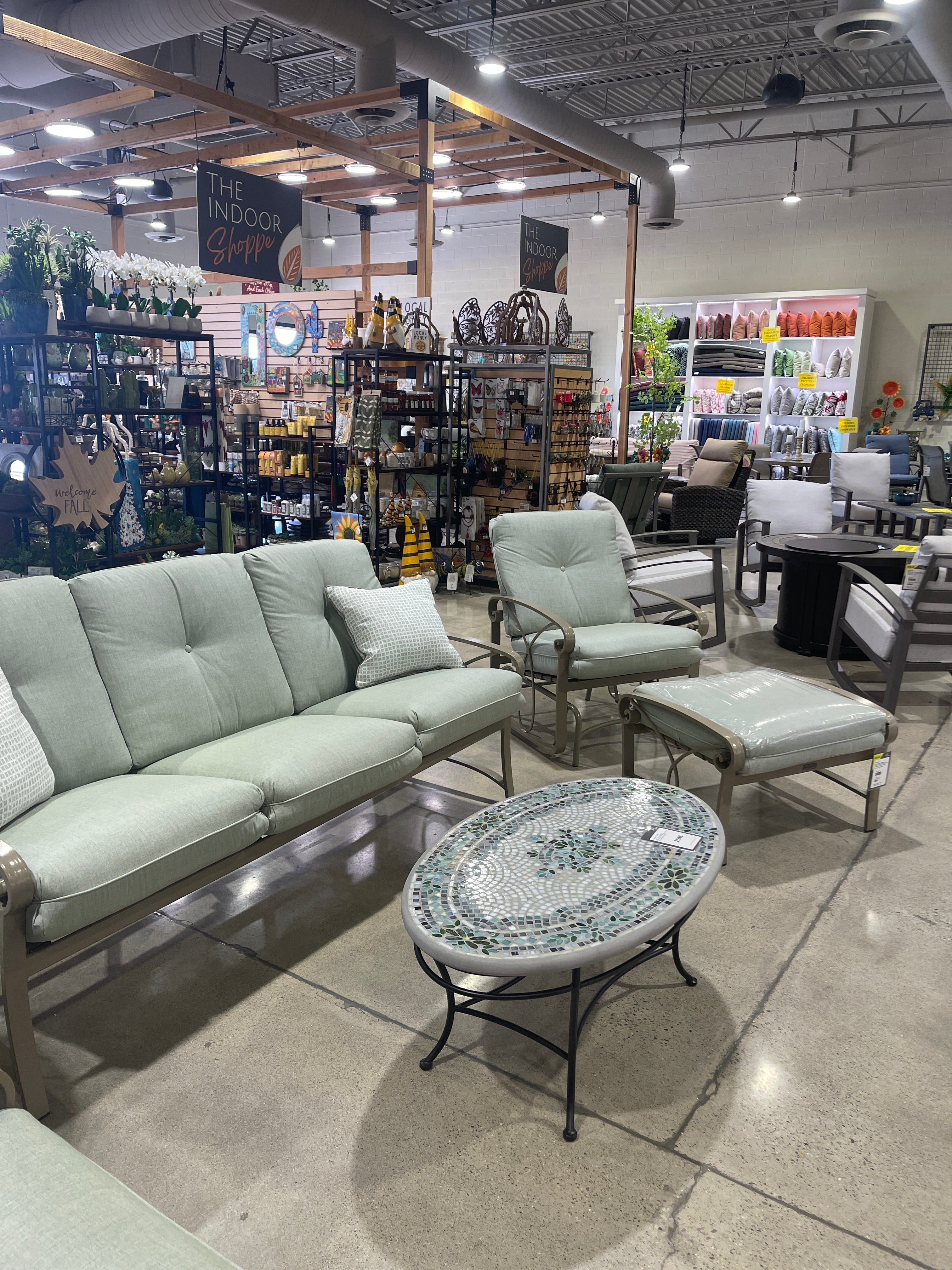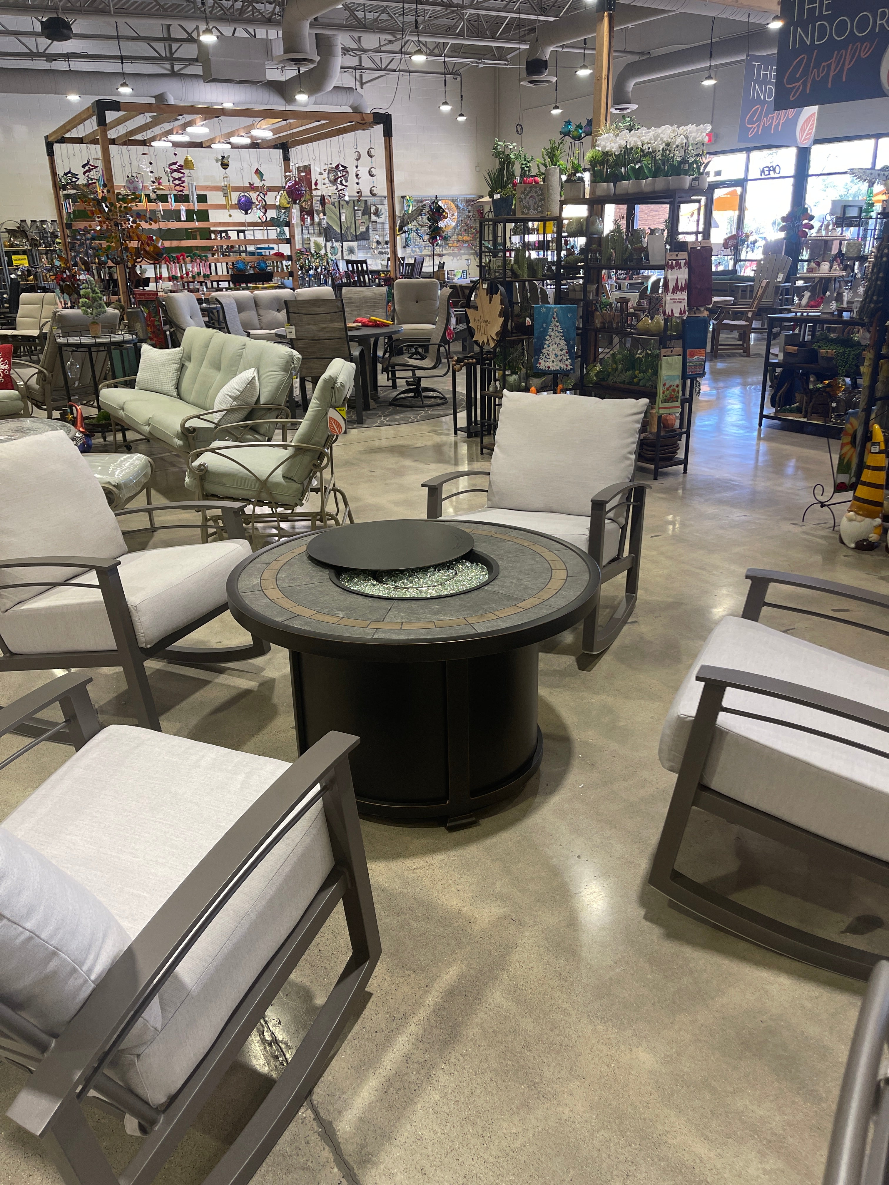 Deep seating chairs/loveseats/sofas, dining/counter/bar chairs, dining tables square/round/rectangle, adirondacks, gliders, benches, console tables, side tables, coffee tables, saddle stools, swivel chairs, chaise lounges, fire tables, bar carts, pet feeders