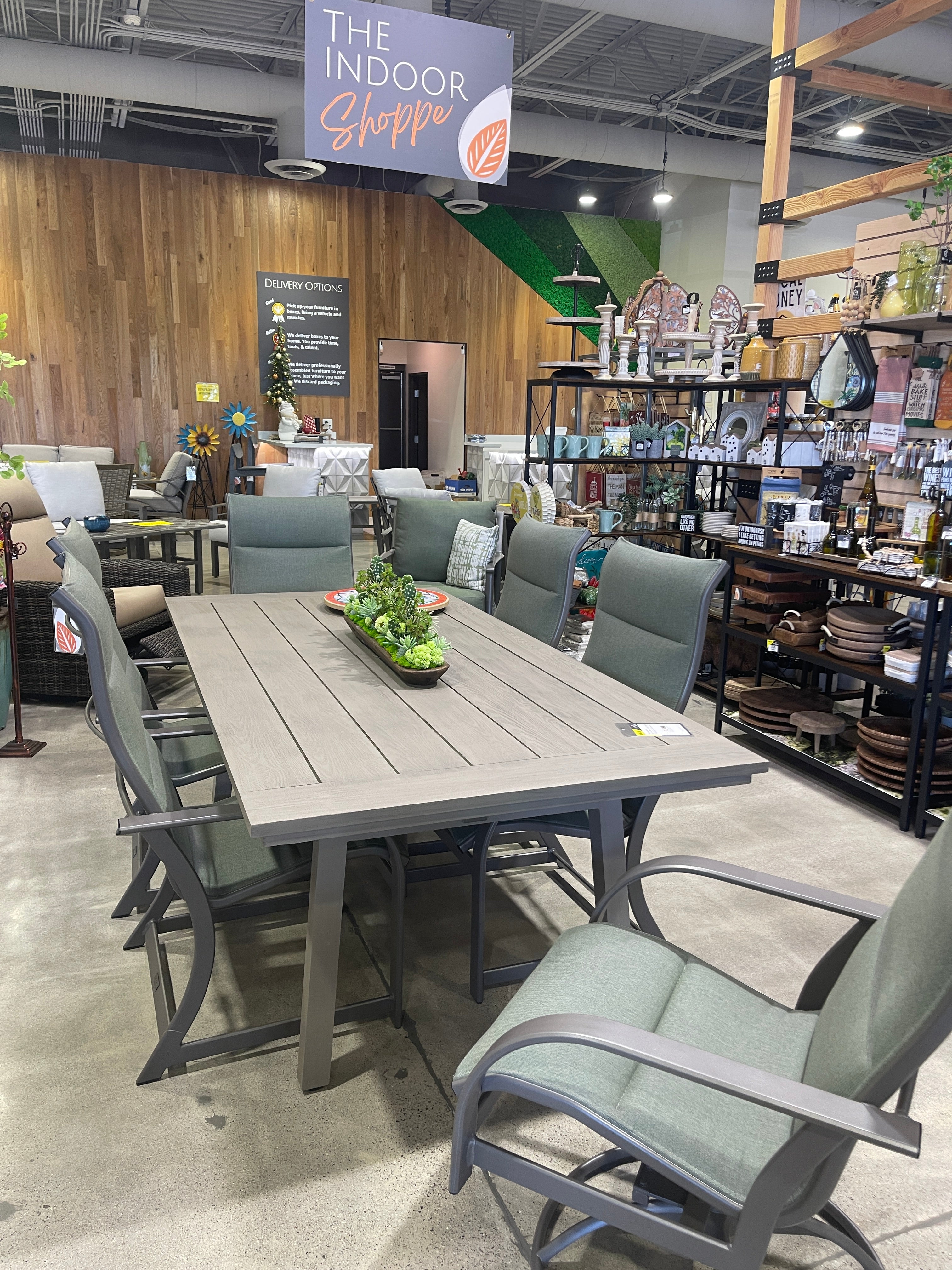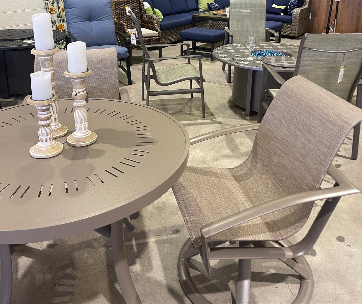 So many options - choose your chair, choose your table, choose your color, shape and size, choose your material. Aluminum or composite, cushions or no cushions, we have what you're looking for.